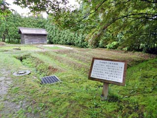 「寒地稲作と暖水路跡」。 「旧島松駅逓所」の駅逓取扱人を勤めた「中山久蔵」は、 川から引いた水を温めてから水田に流す等、