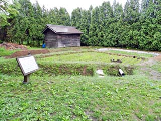 「水田址と赤毛種見本田」。 赤毛種見本田では、毎年春、「赤毛種の田植え」が 行われるという。 写真をクリックすると「水田址と赤毛種見本田」の