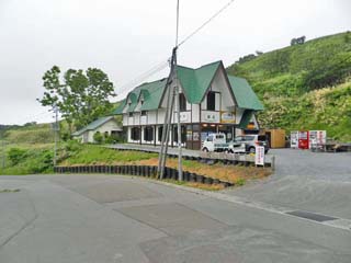 右の写真に写る道を、右の方向に進むと「女郎子岩」。左にトンネルを抜けると「島武意海岸」である。 左の写真に写るのは、レストハウス「鱗晃」。 |
