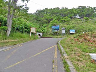 「島武意海岸トンネル」出口。 トンネルを出た所が、展望台になっている。 |