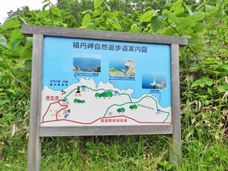 「積丹岬入口」に立つ案内図。 日本地図に書かれる「積丹岬」は、この案内図よりも 左にある。 写真をクリックすると案内図が 拡大表示(800x600)されます。 |