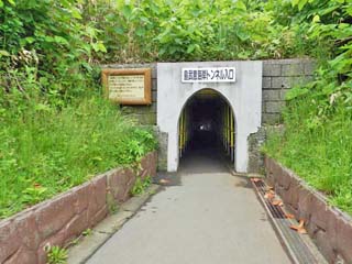 トンネルの出入口付近には、トンネル補強の支柱が設置されており、幅が狭くなっているが、