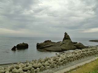 2011/9/9(14:00) 「天狗岩」。 道道87号線(知床公園羅臼線)沿いにある。 天狗のお面が上を向いている形をしている。