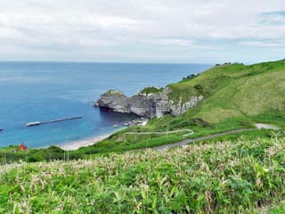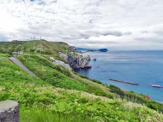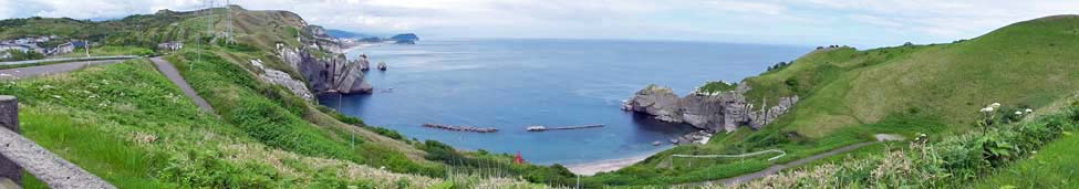 「トッカリショ展望台」から見る南側の景色。 海に突出るのは「トッカリショ岬」である。 写真をクリックすると2倍ズームで