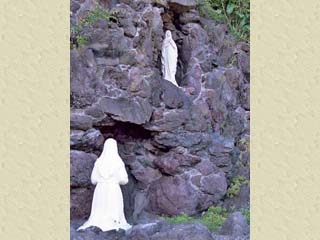 似せて作られたもので、14歳の少女「ベルナデッタ」が 聖母マリアを見上げてひざまずく姿である。 写真をクリックすると拡大写真(450x600)が 表示されます。 |