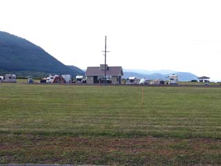 2010/6/30(14:42) 「ウスタイベ千畳岩キャンプ場」。 岬の入口にある、このキャンプ場は、無料で ひろびろとした芝生の上にテントを張ることが できることから道北では人気の場所という。 |