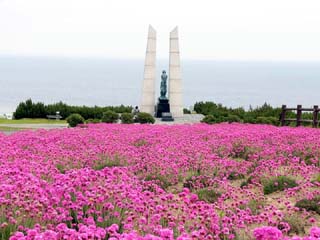 2010/6/30(10:49) 「九人の乙女の碑」。 昭和20年8月樺太真岡郡真岡町の真岡郵便電信 局で、ソビエト軍侵攻時、17~24歳の9人の 女性電話交換手が「皆さん、これが最後です。 さようなら、さようなら」という言葉を残し 自殺、殉職した「真岡郵便電信局事件(北のひめ ゆり事件)」の慰霊碑。 |