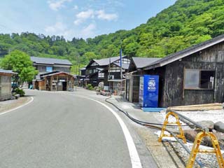 2014/5/29(11:44) 右に「奥山旅館 本館」。 本館には、混浴の岩風呂がある。 |
