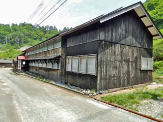 2014/5/29(11:46) 北側から見る「小椋旅館」。 道の左側が「本館」、右側に「自炊棟」。 |