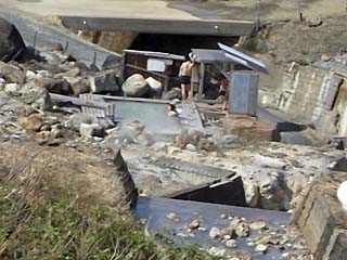 2011/5/6(14:38) 「蒸ノ湯休憩所」から下に見る露天風呂。 8倍ズームで撮影した写真を、更に該当部分のみ 切り抜いている。 地図で場所を確認すると、「蒸ノ湯温泉」よりも 更に200m程奥と思われ、この写真と「蒸ノ湯 温泉」との関係は不明。 なお、「蒸ノ湯温泉」には、大浴場、露天風呂、 地熱浴「オンドル」があり、日帰り入浴も宿泊も 可能。露天風呂では、夜になると、ランプの灯り の下での入浴が楽しめるという。
