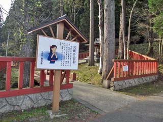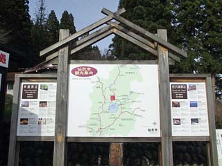 2011/5/6(15:54) 「御座ノ石神社」駐車場にある案内板。 案内板の左には、「角館周辺」。右には「田沢湖 周辺」の観光スポット等が紹介されている。 なお、「御座ノ石神社」は、「田沢湖」の北岸に あり、「たつこ像」と共に「田沢湖」湖畔の2大 観光スポットの1つである。