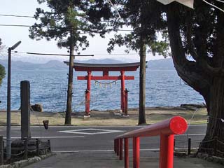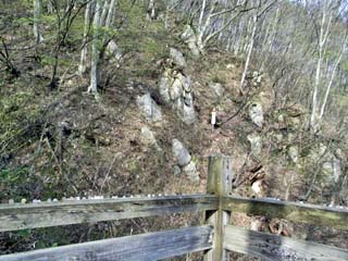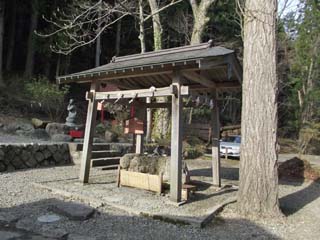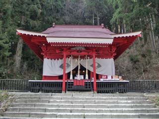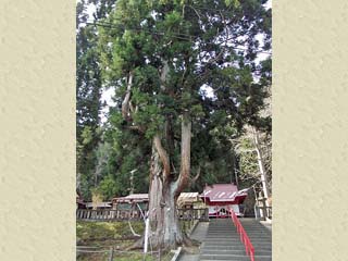 2011/5/6(16:02) 「御座ノ石の杉(手前)」と「御座ノ石神社 (石段の奥)」。 写真をクリックすると拡大写真が表示されます。