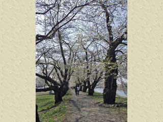 2011/5/7(9:44) 「桧木内川堤」の桜。 桜並木は、「古城橋」の上流にもあるが、 長く続くのは下流の方向で、その桜並木が 「桧木内川」の両岸に長く続く様は見事である。