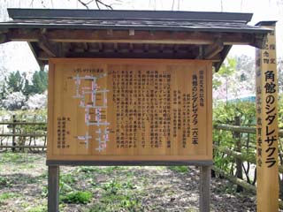2011/5/7(9:33) 国道46号線に近い駐車場にあった案内板。 案内板の地図は、武家屋敷などがある「伝統的 建造物群保存地区」が書かれ、「桧木内川堤」は、 この地図の左(西)にある。 写真をクリックすると案内板の地図部分を 拡大して表示されます。 なお、この地図は、886x894ピクセルあります。 地図上の文字を読みたいときには、ウインドの サイズを大きくし、スクロールバーを ご利用下さい。