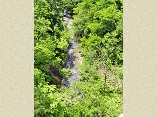 渓流からの高さ40mという「三途川橋」の上に造られた展望所から見下ろす断崖絶壁は、足はすくみ背筋も凍る