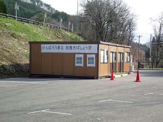 2011/5/7(7:00) 駐車場内に建てられた「休憩所」。 4月上旬~5月上旬に「刺巻水ばしょう祭り」が 開催されているということで、この建物は、この 祭りのために建てられたものと思われる。 「休憩所」の中には、地元特産品の販売コーナー 等もあるようだ。 なお、「刺巻湿原」の場所は、観光地として 知られる「田沢湖」の最寄り駅「田沢湖駅」から 南に一駅離れた「刺巻駅」から、さらに南に 1km程の国道46号線沿いにある。