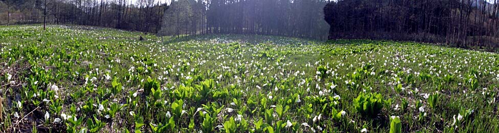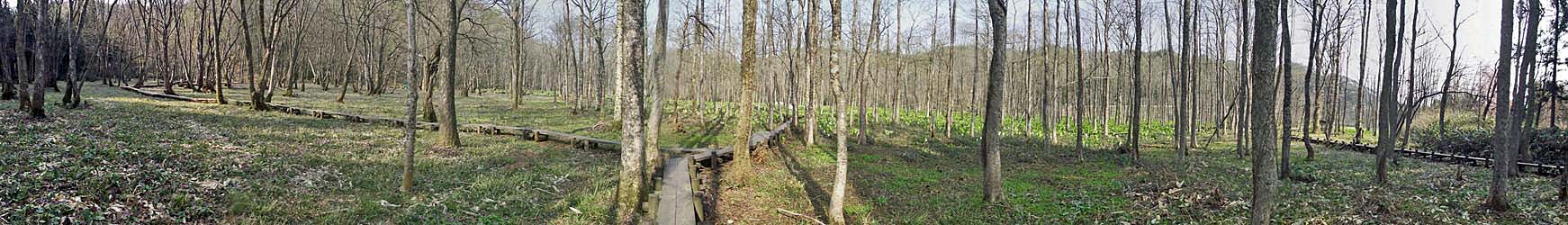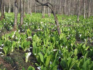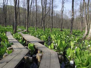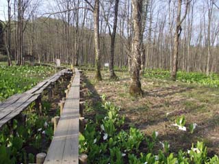 2011/5/7(7:01) 湿原内では、木道を歩く。 木道からは「水芭蕉」を、間近に見ることが できる。