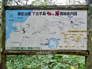 2011/10/26(15:57) 「仏ヶ浦」駐車場の案内板。 「仏ヶ浦」の海岸沿いに点在する「巨岩」 「奇岩」等を見るためには、駐車場から高低差 約100m。約15分を歩かなければならない。