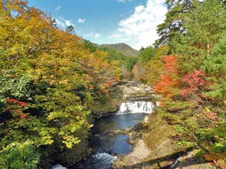 「セキレイ橋」の上から見る「大滝」。 「セキレイ橋」の上からは、「大滝」を正面から 見ることができる。 写真をクリックすると1.5倍ズームで撮る 「大滝」の写真(600x450)が表示されます。 |