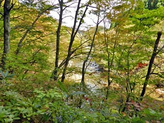 2017/10/19(9:43) 再び視界が閉ざされる。 この先、「八ツ橋」までの間では、 再び、視界が大きく開けることはなかった。 右には、木々の合間から、「川内川」の 流れが見えている。 |