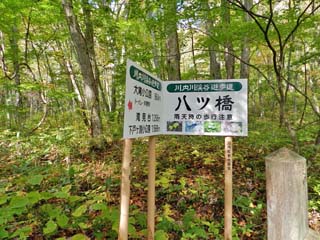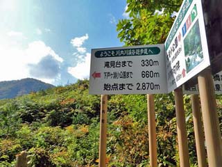 2017/10/19(9:36) 「川内川渓谷遊歩道」に立つ標識。 「セキレイ橋」を渡ったところは、「川内川渓谷