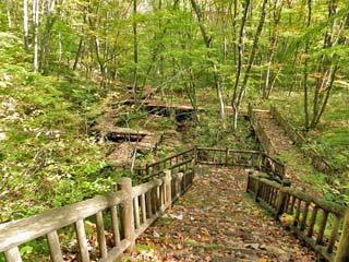 「八ッ橋」に到着。 遊歩道は、この場所で右に曲がり、 「八ツ橋」へと下りる。 |