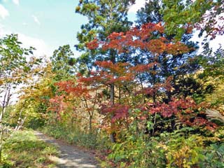 遊歩道東側に見る「紅葉」。 写真は、振り返って撮影。 |