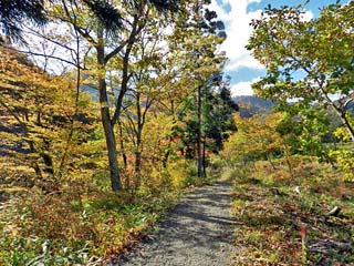 靴は、軽登山靴がベターではあるが、 雨の後でもなければ、スニーカー程度でも、 歩くのに問題はない。 |