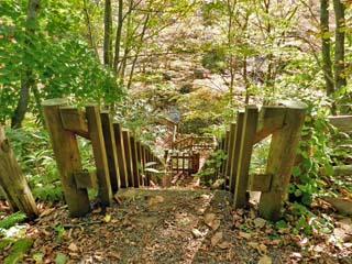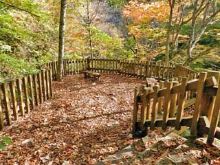 「八ツ橋」まで往復の道は、坂もなく体力に余裕が 残ったため、この後、更に南へと「滝見台」までの 330mを往復することとした。 |