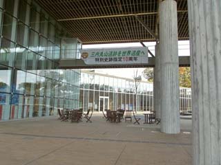 模様替え中の建物(2012年2月現在:展示室)前で見る「三内丸山遺跡」。
