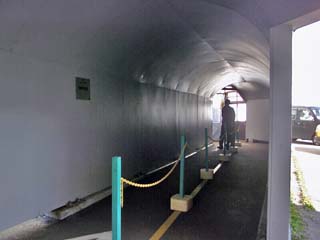 2011/10/27(14:12,14:19,14:30) 「体験坑道」の様子。 「青函トンネル」は、実際に列車が走るトンネル以外にも何本ものトンネルが掘られており、 「体験坑道」は、トンネル工事の際に実際に使われていた「作業坑」の一角を利用したものである。 以下、JR北海道函館支社のHPにある「青函トンネル豆知識」から抜粋すると、 ・本坑(ほんこう):高さ7.85m、幅9.7mの列車が通るトンネル。 ・先進導坑(せんしんどうこう):海底の地質や水の出方を調査し施工方法の検討や開発に活かすため、最も先行して掘られたトンネル。 現在は、排水と換気のために使われている。 ・作業坑(さぎょうこう):本坑の横30mのところに平行して掘られている。本坑より先まわりして作られた連絡誘導路。 現在は、保守のための通路としてトラックや自動車が通っている。 この他にも、工事関係者と資材・機械の運搬等のために、エレベータの設置された「立坑(たてこう)」。 14度の勾配にケーブルカーが設置された「斜坑(しゃこう)」。「本坑」と「作業坑」をつなぐ「連絡誘導路」も掘られている。 実際に「作業坑」を見て、「東京湾アクアトンネル」等を例に考えると、すぐにでも一般車の走るトンネルが作れそうに思ってしまうのだが、 「アクアトンネル」ですら、その長さは、9.6km。「青函トンネル」の長さは、なんと53.85km。深さは「アクアトンネル」の 水面下60mに対し、青函トンネルは、水面下240m。比べものにならないくらいの差である。また、青函トンネルは、開通した今でも 湧水(塩水)が常に出続けており、常時ポンプで湧水を汲み出していないと、トンネルは水没してしまうという。 これらの問題が全て解決されたとしても、フェリーに十分対抗できる料金設定ができるかというと、その可能性は限りなく0に近いであろう。 また、開通以前からトンネルの活用法は問題視され、中には「石油の貯蔵庫にすべきだ」等という人もいたというが、 開通後は、北海道-本州間の貨物輸送に重要な役割を果たしており、一日に上下50本もの貨物列車が運行されているという。 |