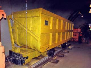 2011/10/27(13:32) 「水平人車」。 傾斜の緩い「先進導坑」「作業坑」「本坑」で、 人を運んでいた車両で、「蓄電池機関車」に 「水平人車」2~3両を連結して運行したと いう。 |