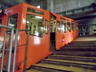 2011/10/27(14:03) 「ケーブルカー」車内の様子。 発車前の様子である。 なお、外から見た「ケーブルカー(もぐら号)」 の様子は、本ページの下方にあります。 |