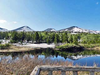 展望デッキ左(西)側から見る「睡蓮沼」と「八甲田連峰」。