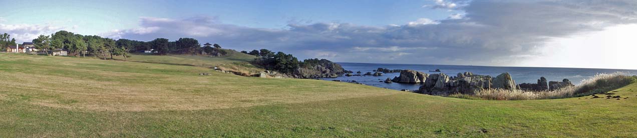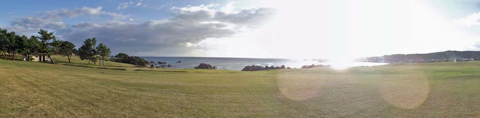 2011/10/26(7:07) 朝日に輝く「種差海岸」。 「種差海岸」は、「八戸駅」から東に約16kmの距離にあり、広大な土地に天然の芝生が広がることで知られる。 また、下北半島の穏やかな砂浜と三陸海岸の荒々しい岩礁と断崖の中間点に位置するため、その両方の景観を味わうことができる。