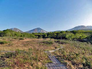 また、夏には「ニッコウキスゲ」や「キンコウカ」が湿原を黄金色に染め、8月には「ウメバチソウ」の白い花が 咲くという。