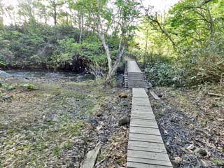 湿原と八甲田温泉の間には二つの橋が架かる。 右の写真は、「空川」に架かる橋。 |