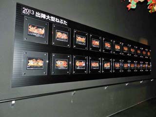 2013年の「出陣大型ねぶた」を紹介するパネル。 パネルには、平成25年(2013)に出陣した 大型ねぶた全22台の写真が飾られている。 |