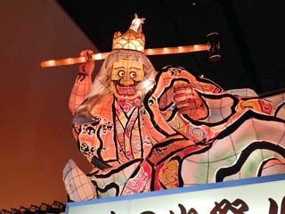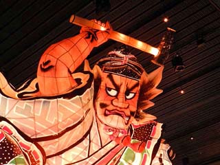 大きさは、台車も含め、最大幅9m、高さ5m、奥行き7mという規定があるが、 ほとんどの「大型ねぶた」は、制限ギリギリで作られている様であり、その重量は4㌧になるという。 どちらの写真もクリックすると拡大写真(600x450)が表示されます。