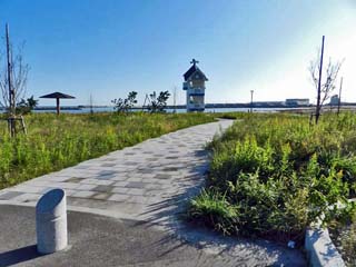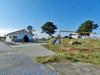小さな公園だが、「伝承鎮魂祈念館」や 「東日本大震災慰霊碑」が建ち、震災を忘れない ためのメモリアル公園となっている。 |