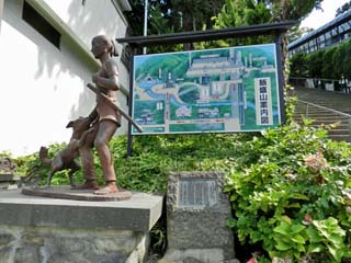 飯盛山麓で、愛犬の「クマ」と出会ったときの様子を 銅像にしたという。 写真をクリックすると「飯盛山案内図」が 拡大表示されます。 この案内図は、1.200x800ピクセルあります。