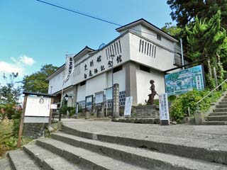 参道石段の登口にあり、館内には、「白虎隊」をはじめ、 会津藩関係の史料等1万2千点が展示されるという。 |