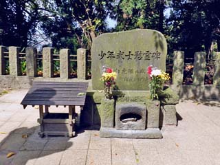 「少年武士慰霊碑」。 白虎隊以外で戦死した少年武士たちの慰霊碑。 |