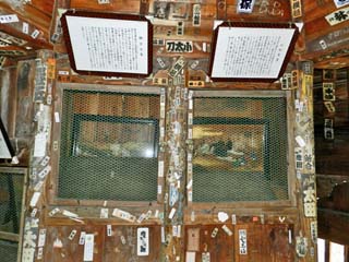 「さざえ堂」最頂部に掲げられる額と絵額。 額には、「顕宗(けんぞう)天皇」と「仁明(にんみょう) 天皇」について書かれている。 |