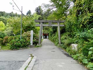 2014/9/30(11:49) 「厳島神社」へと続く参道。 鳥居には「厳島神社」とある。 参道左に立つ標識には「奥州會津飯盛山本参道」と