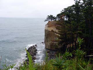 2010/9/23(15:39) 「鵜の尾埼灯台」から見る「鵜の尾岬」の断崖。 見える断崖の上に「へりおす慰霊碑」がある。 |