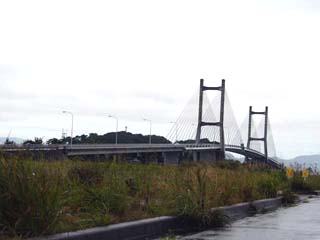 2010/9/23(16:01) 「鵜の尾岬トンネル」の北側で見る 「松川浦大橋」。 平成7年(1995)3月完成。全長520mの斜張橋 で、夜間は幻想的なライトアップが施される。 主塔の高さは58m。 |
