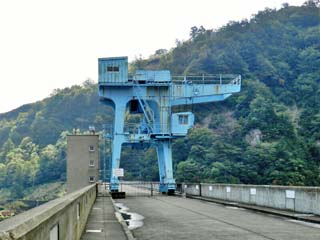 「田子倉ダム」の天端(てんば)に設けられたクレーン。 |