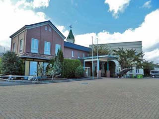 資料館入口の玄関を入る。 入館は無料。駐車場も無料である。 |
