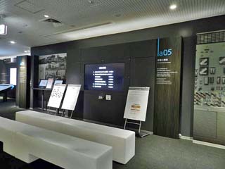 「技術開発と研究施設の紹介」。 このコーナーでは、世界初となる廃炉作業に向け、 国内外の技術開発の状況が紹介されている。 |